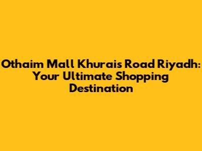 Hey guys! Are you ready to dive into the heart of Riyadh's shopping scene? Let's talk about Othaim Mall Khurais Road Riyadh, a place where shopping dreams come true. This isn't just another mall; it's a vibrant hub where you can find everything from high-end fashion to everyday essentials. Whether you're a local or just visiting, Othaim Mall Khurais is a must-see destination. Let's explore what makes it so special, shall we?